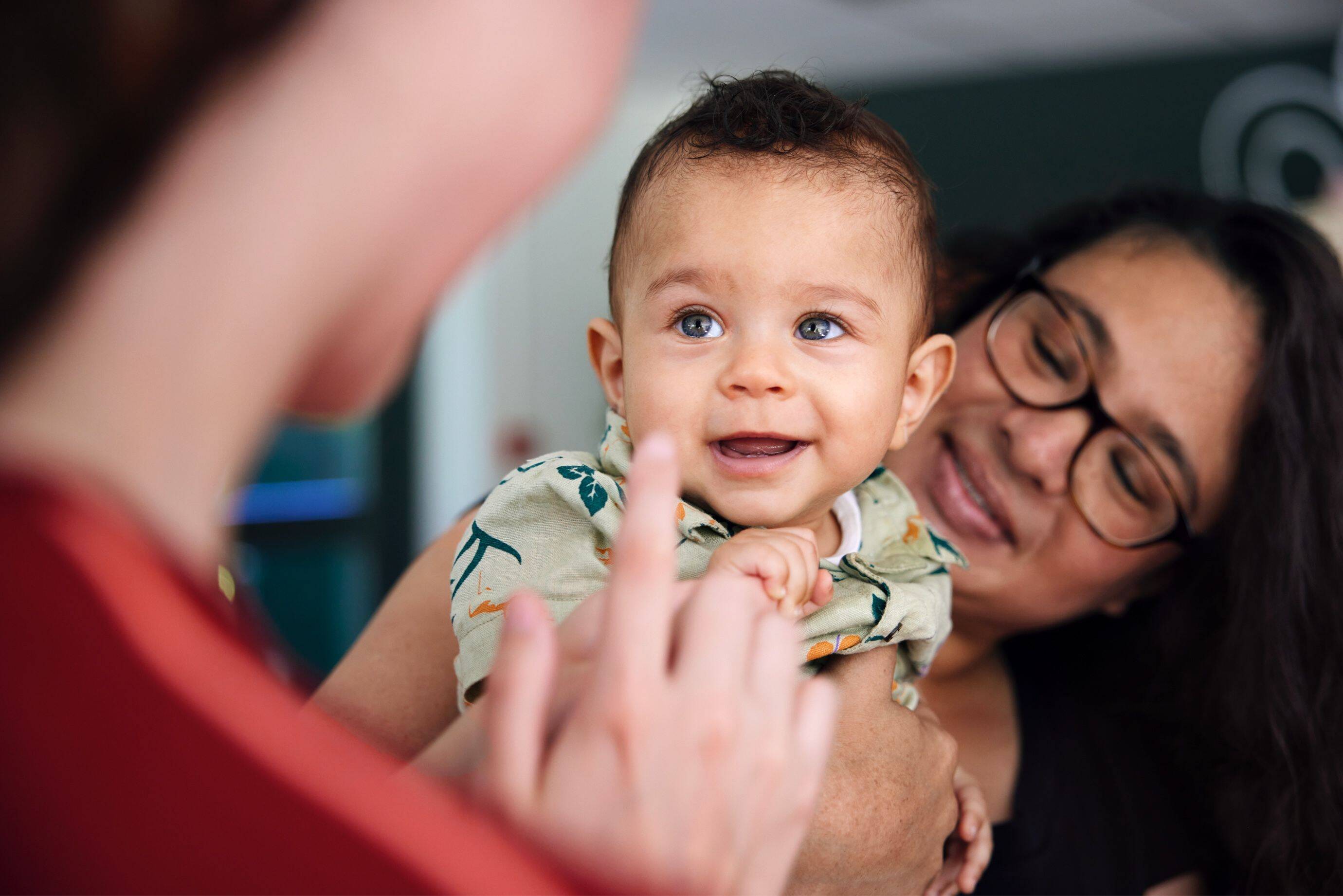 Baby’s communiceren zonder woorden. Ze gebruiken geluiden, lichaamshouding of gezichtsuitdrukkingen om te laten weten wat ze ergens van vinden, dat ze moe zijn, een volle luier hebben of honger hebben. Wij kijken en luisteren goed naar ze en geven woorden aan wat we zien. Ondertussen blijven we checken of we de baby goed begrepen hebben en of onze reactie de juiste is.