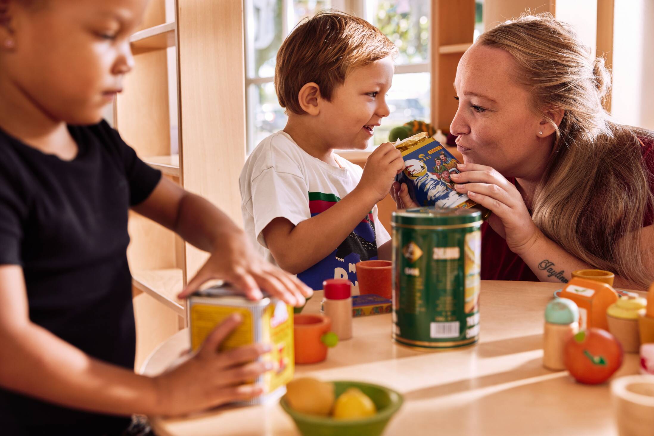 Luisteren, je mening geven, omgaan met weerstand en verschillende ideeën, probleemoplossend denken, samenwerken en keuzes maken. Maar ook voor elkaar zorgen. In de groep kunnen kinderen verschillende rollen spelen en uitproberen. Zo leren ze zichzelf, hun eigen talenten en interesses goed kennen. Onze pedagogisch professionals zorgen voor de goede omstandigheden waarin kinderen met elkaar kunnen spelen. Ze begeleiden kinderen hier ook bij. Zo voelen ze zich veilig bij elkaar en leren ze positieve relaties op te bouwen. Ze helpen kinderen elke dag om contact met elkaar te leggen. We leren kinderen dat iedereen erbij hoort en dat elke mening telt.